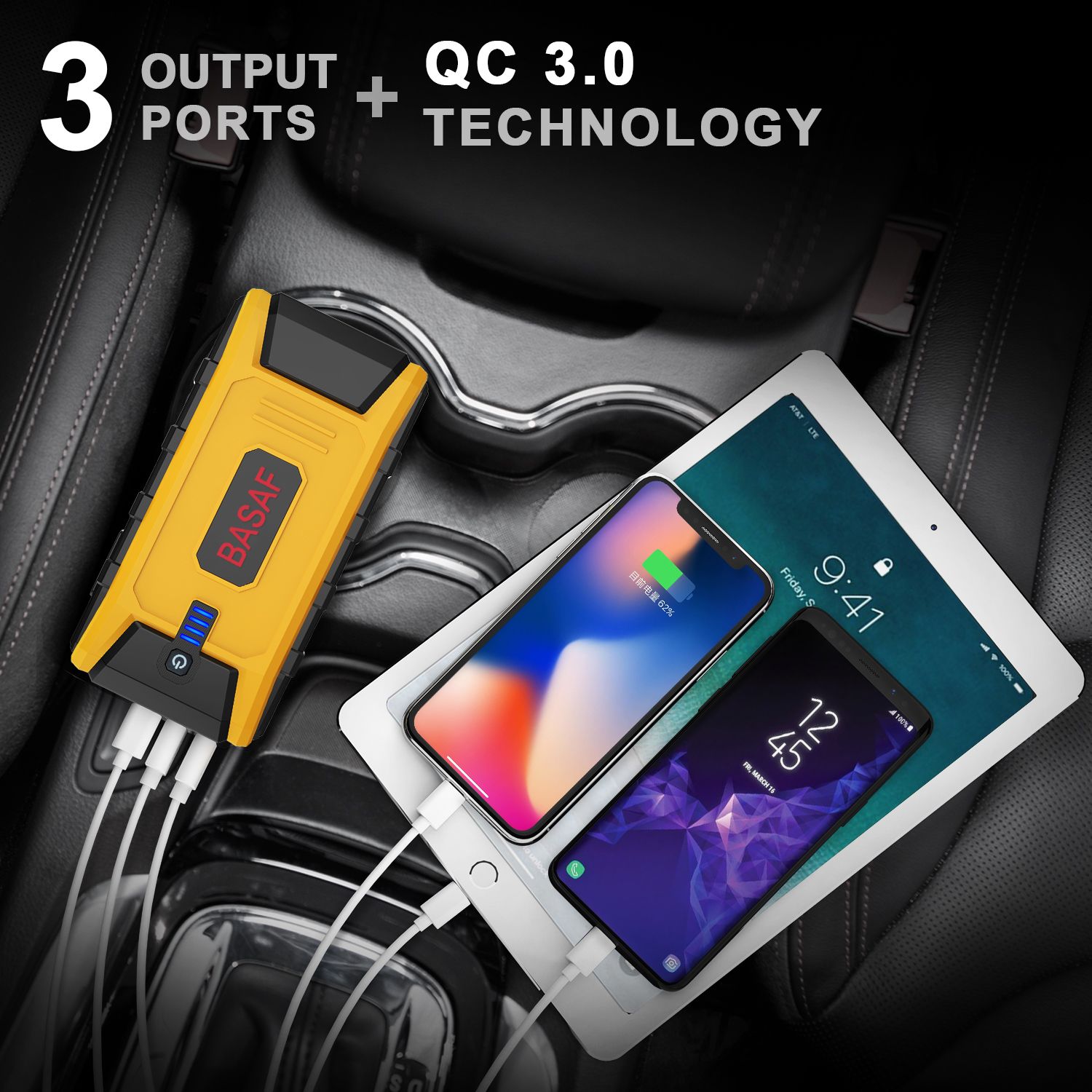 Basaf Car Jump Starter 1200a Peak 12v Portable Battery Pack Up To 8 0l Gas 6 0l Diesel Engine Power Bank Type C In Out And Dual Usb Quick Charge Ports Jumpstarter Io