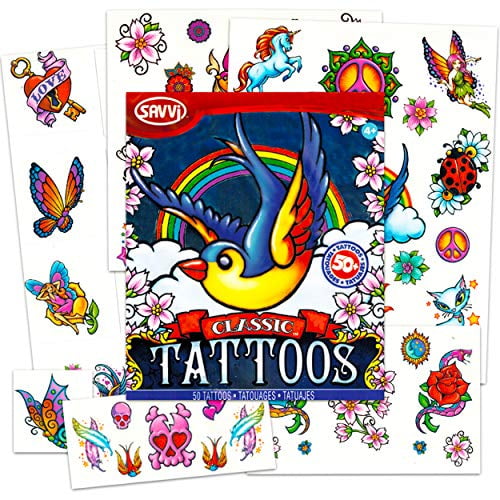 American Traditional Temporary Tattoos For Women Men Adults Halloween Costume Accessories 90 Bold Classic Tattoos With Vintage Designs Walmart Com